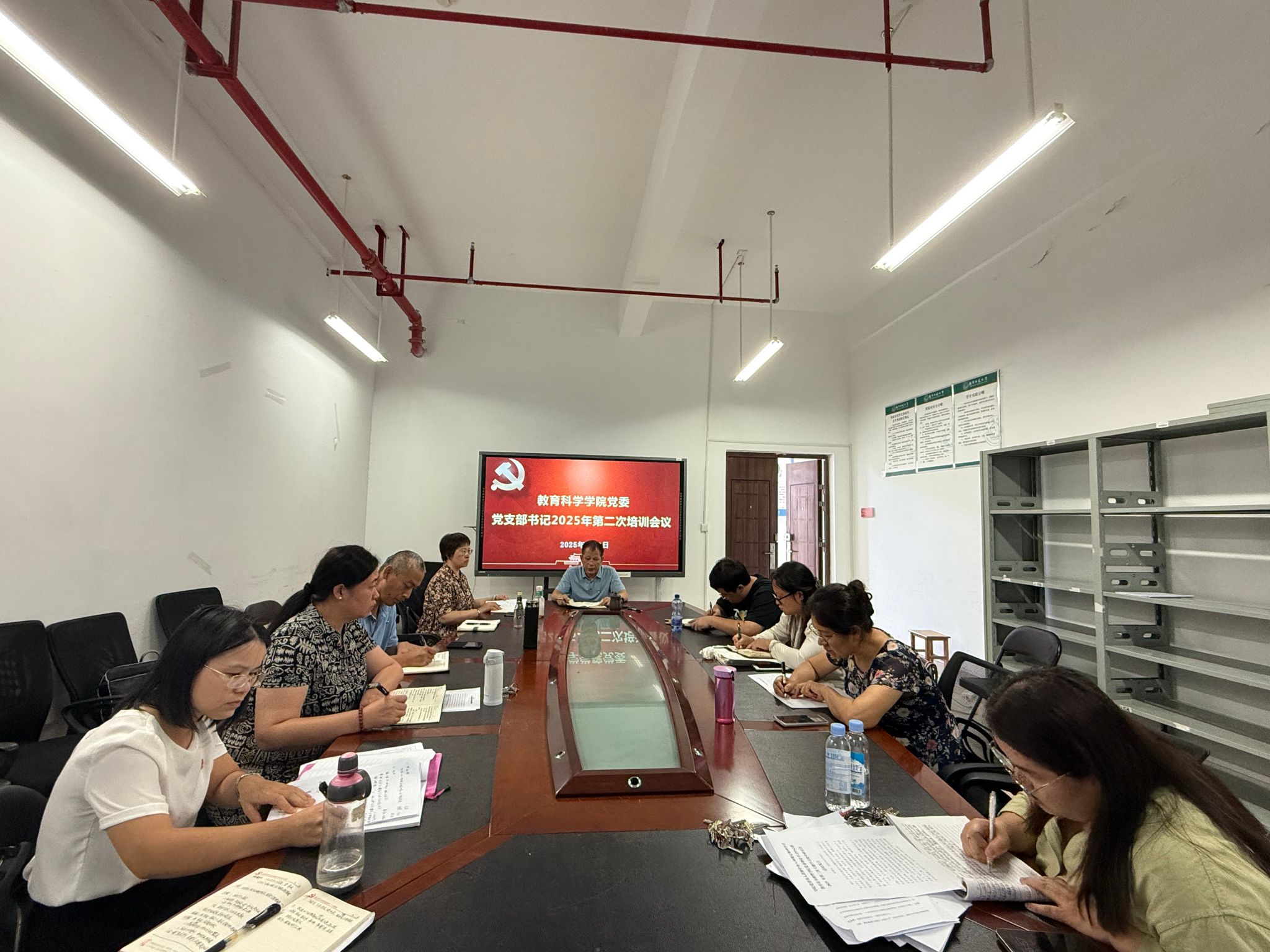 党委在五合校区理楼1004-1会议室召开党建工作例会暨党支部书记2025年第二次工作培训会。会议由学院党委书记余朝文主持,全体党支部书记参加会议。