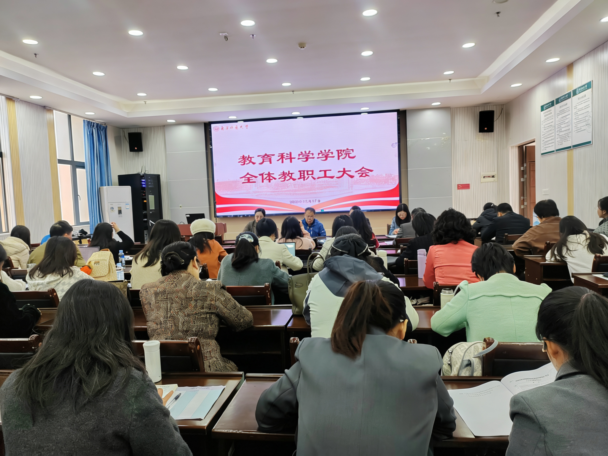 在五合校区理综楼1003会议室召开12月份全体教职工会议。会议由院长李强主持,学院全体教职工参会。